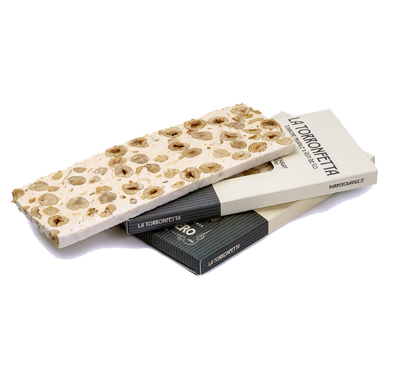 Nato negli anni '50 come sfrido di lavorazione dal taglio delle stecche di torrone e presto nobilitato a prodotto di punta. Una singola fetta sottilissima e friabile, lavorato ancora secondo l'antica ricetta del torrone d'Asti.
